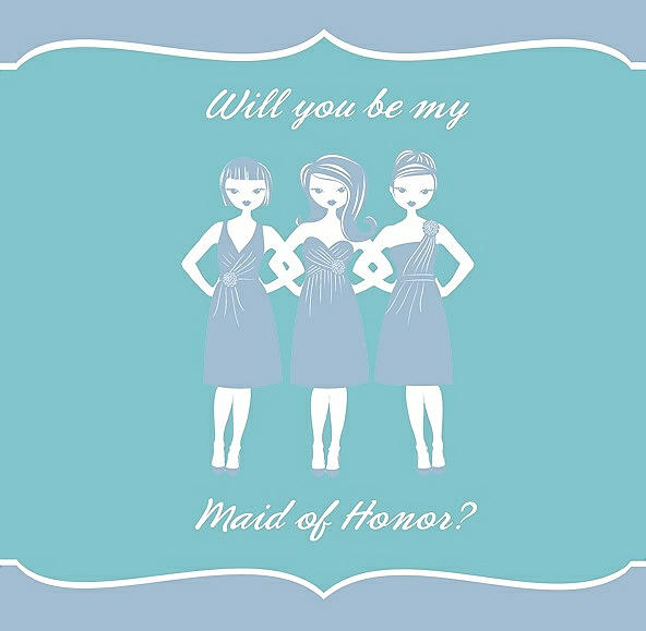 Will You Be My Maid of Honor Card - Girls in Pale Blue & Spa