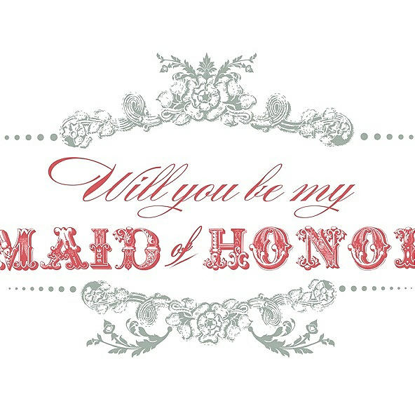Will You Be My Maid of Honor Card - Vintage in Celadon & Perfect Coral