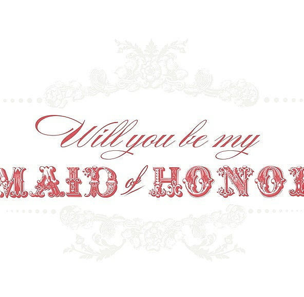 Will You Be My Maid of Honor Card - Vintage in White & Perfect Coral