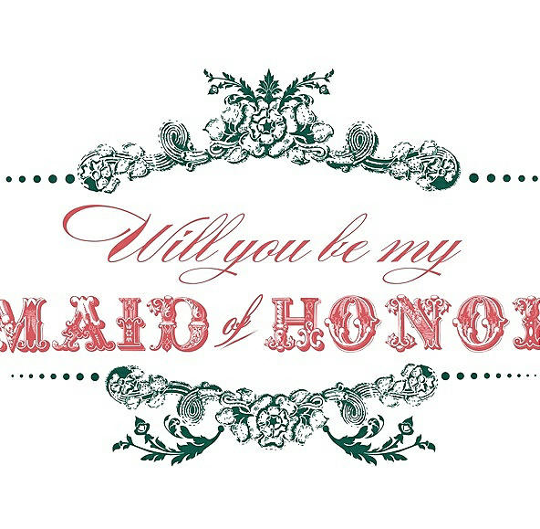 Will You Be My Maid of Honor Card - Vintage in Hunter Green & Perfect Coral