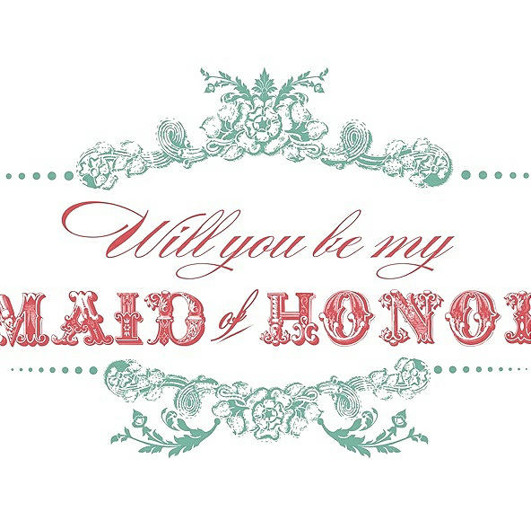 Will You Be My Maid of Honor Card - Vintage in Meadow & Perfect Coral