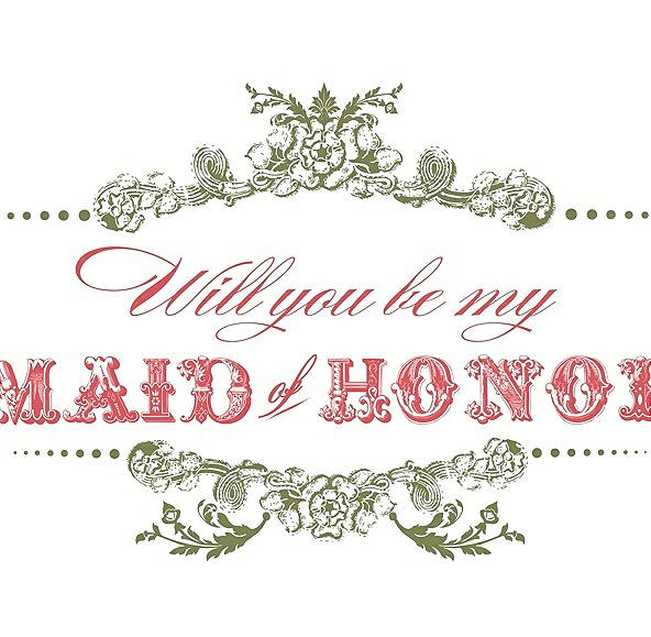 Will You Be My Maid of Honor Card - Vintage in Olive & Perfect Coral