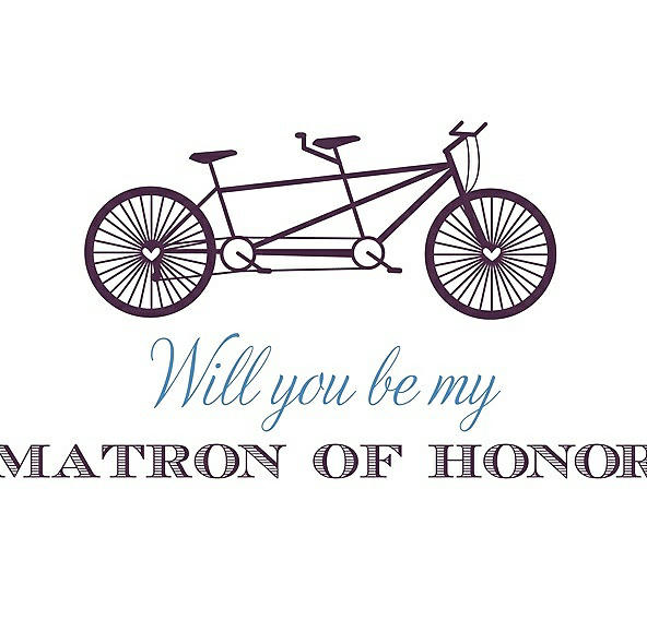 Will You Be My Matron of Honor Card - Bike in Aubergine & Cornflower
