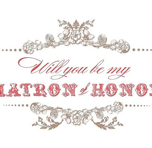 Will You Be My Matron of Honor Card - Vintage in Cappuccino & Perfect Coral