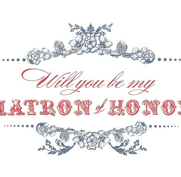 Will You Be My Matron of Honor Card - Vintage in Larkspur Blue & Perfect Coral