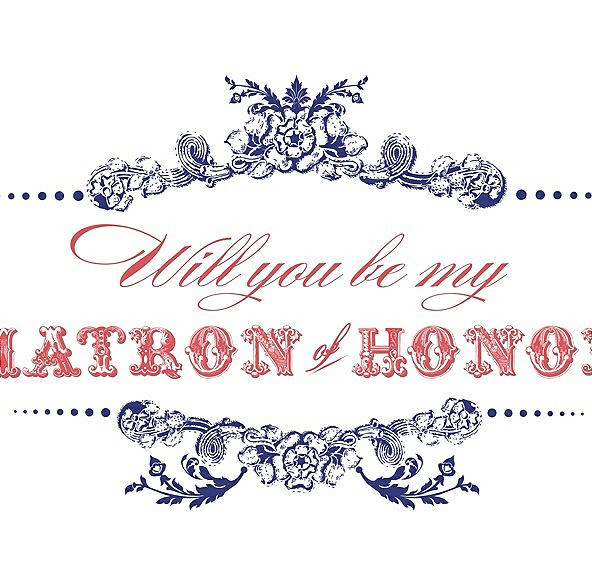 Will You Be My Matron of Honor Card - Vintage in Electric Blue & Perfect Coral