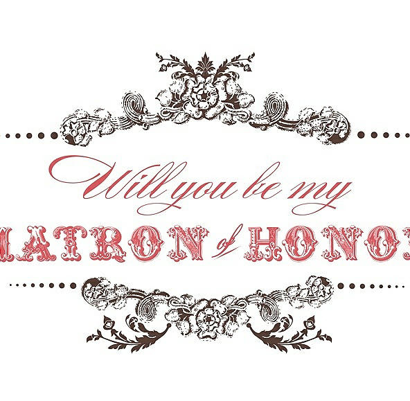 Will You Be My Matron of Honor Card - Vintage in Brownie & Perfect Coral