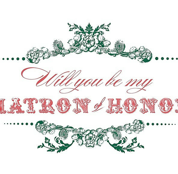 Will You Be My Matron of Honor Card - Vintage in Pine Green & Perfect Coral