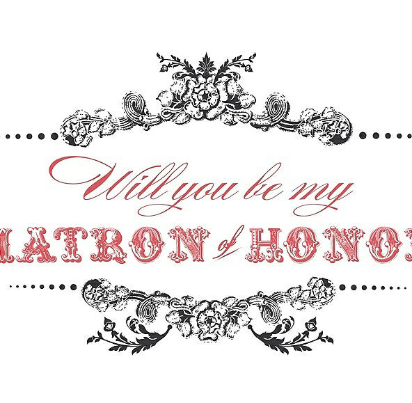 Will You Be My Matron of Honor Card - Vintage in Black & Perfect Coral