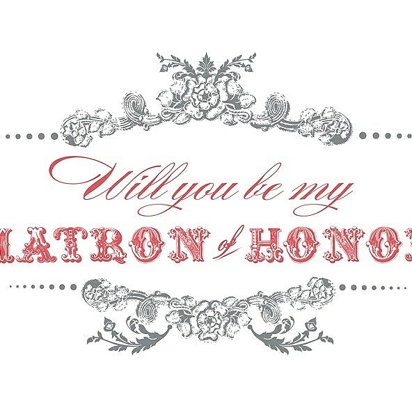 Will You Be My Matron of Honor Card - Vintage in Pewter & Perfect Coral