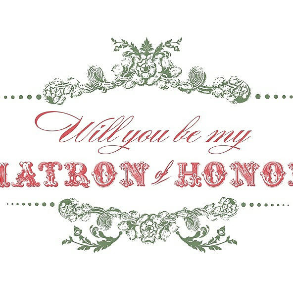 Will You Be My Matron of Honor Card - Vintage in Clover & Perfect Coral