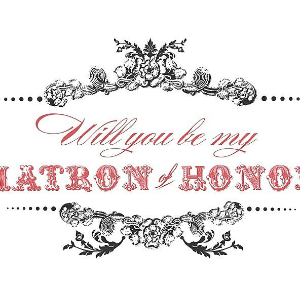 Will You Be My Matron of Honor Card - Vintage in Graphite & Perfect Coral