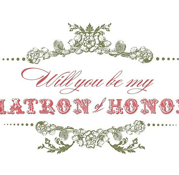 Will You Be My Matron of Honor Card - Vintage in Olive & Perfect Coral