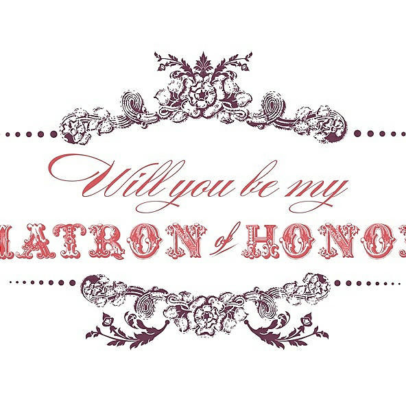 Will You Be My Matron of Honor Card - Vintage in Plum Raisin & Perfect Coral