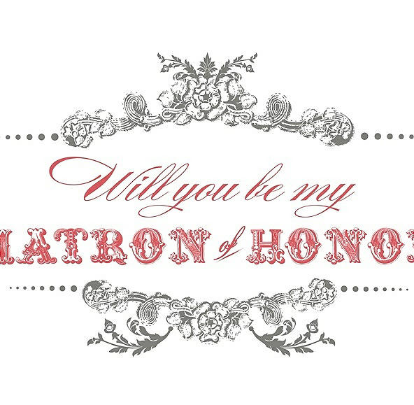 Will You Be My Matron of Honor Card - Vintage in Charcoal Gray & Perfect Coral