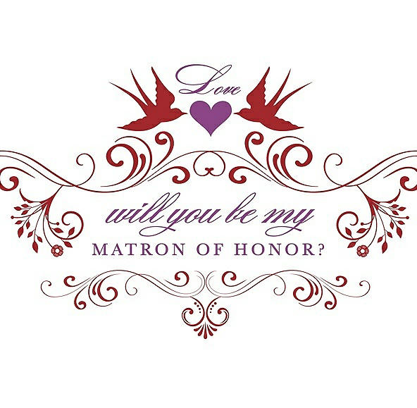 Will You Be My Matron of Honor Card - Classic in Ribbon Red & Orchid