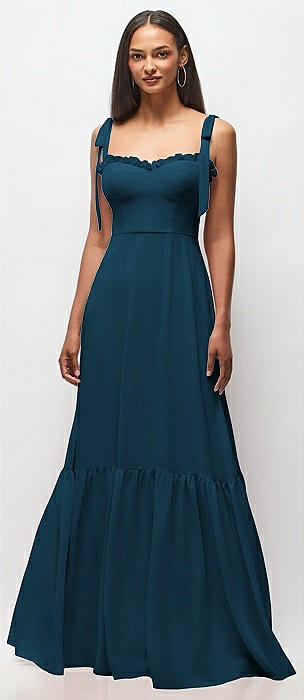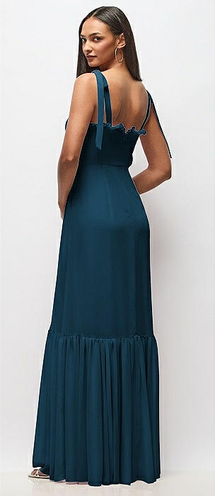 Tie-Shoulder Bustier Bodice Ruffle-Hem Maxi Dress in atlantic blue