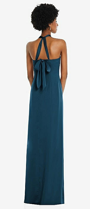 Cowl-Neck Open Tie-Back Stretch Satin Mermaid Dress with Slight Train in atlantic blue