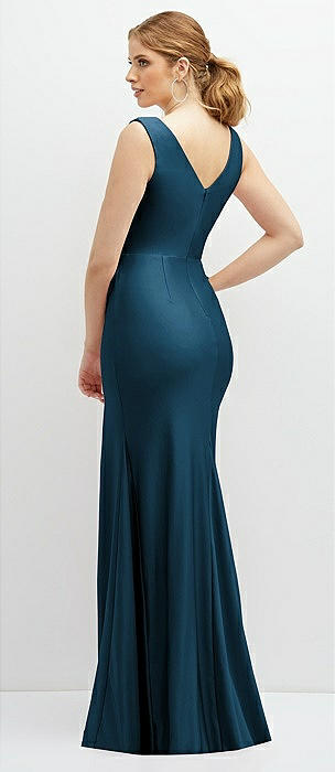 Deep V-Neck Stretch Satin Mermaid Dress with Slight Train in atlantic blue