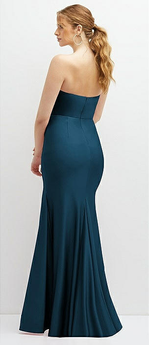 Strapless Basque-Neck Draped Stretch Satin Mermaid Dress with Horsehair Hem in atlantic blue