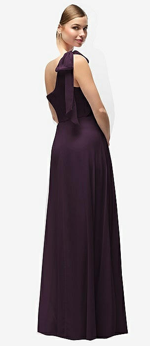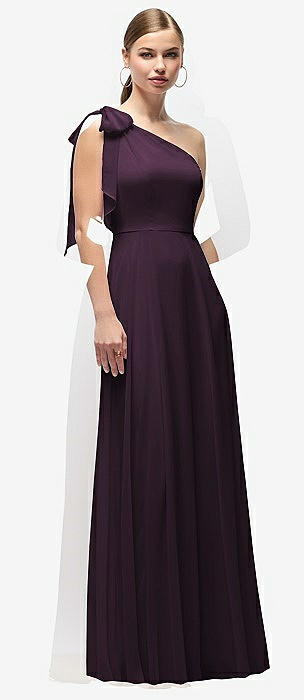 Draped One-Shoulder Maxi Dress with Scarf Bow in aubergine