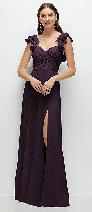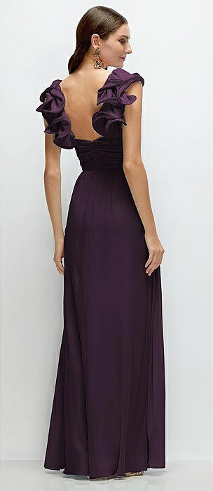 Dramatic Ruffle Edge Strap Chiffon Maxi Dress in aubergine