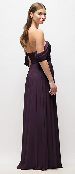 Chiffon Corset Maxi Dress with Removable Off-the-Shoulder Swags in aubergine