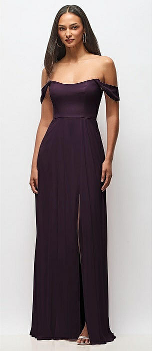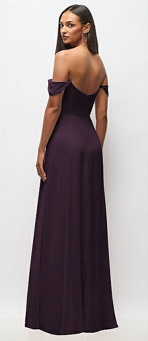 Off-the-Shoulder Draped Neckline Maxi Dress in aubergine