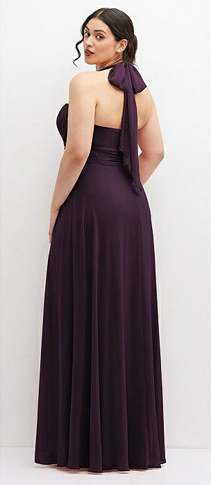 Diamond Halter Maxi Dress with Adjustable Straps in aubergine