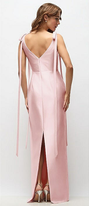Bateau Neck Satin Column Maxi Dress with Exaggerated Tail Bow Straps in ballet pink