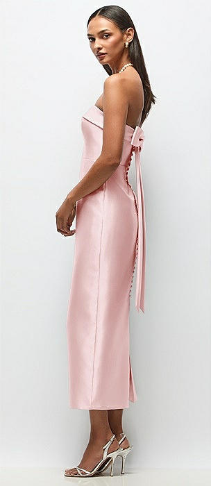 Strapless Cuff Satin Midi Dress with Column Skirt & Back Bow in ballet pink