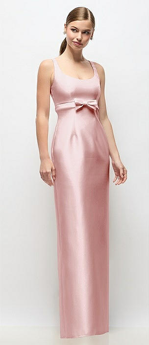 Scoop Neck Satin Column Maxi Dress with Bow at Empire Waist in ballet pink