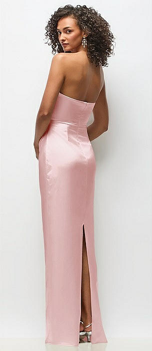 Strapless Draped Bodice Stretch Satin Column Maxi Dress in ballet pink