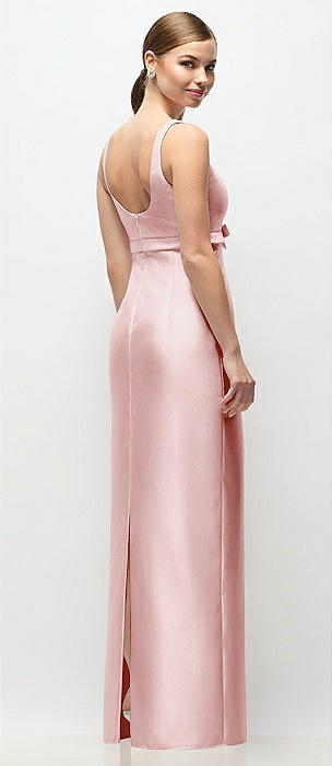 Scoop Neck Satin Column Maxi Dress with Bow at Empire Waist in ballet pink