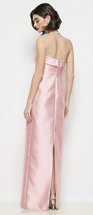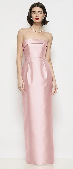 Strapless Cuff Neck Satin Maxi Dress with Column Skirt in ballet pink