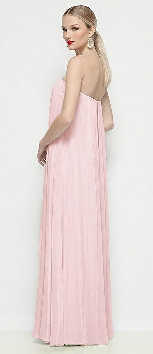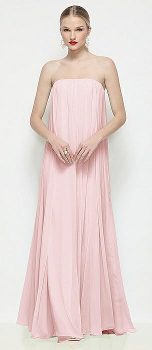 Strapless Shirred Chiffon Trapeze Maxi Dress in ballet pink