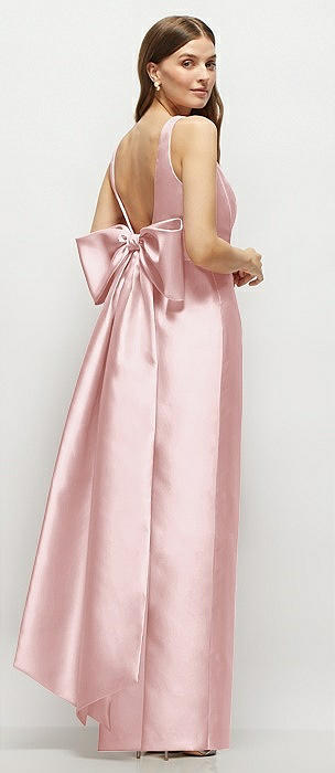 Strapless Satin Column Maxi Dress with Oversized Handcrafted Bow in ballet pink