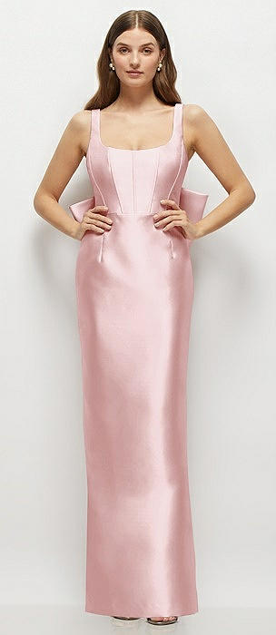 Scoop Neck Corset Satin Maxi Dress with Floor-Length Bow Tails in ballet pink