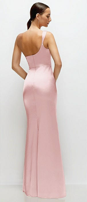 Bow One-Shoulder Satin Trumpet Gown in ballet pink