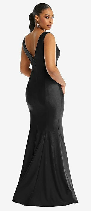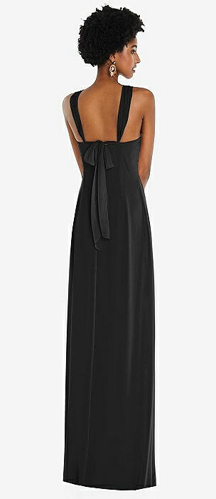 Sleeveless Satin Trumpet Gown with Bow at Open-Back in black