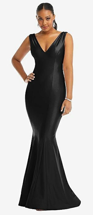 Shirred Shoulder Stretch Satin Mermaid Dress with Slight Train in black