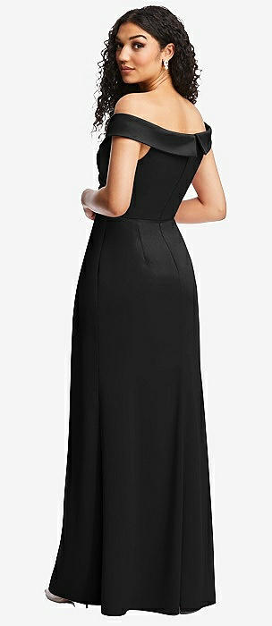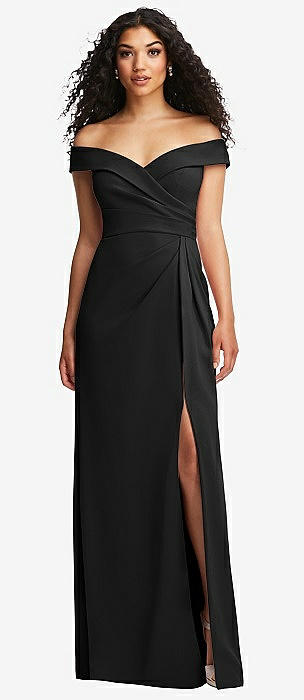 Off-the-Shoulder Cuff Trumpet Gown with Front Slit in black