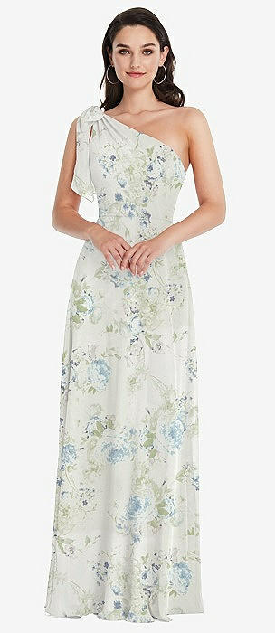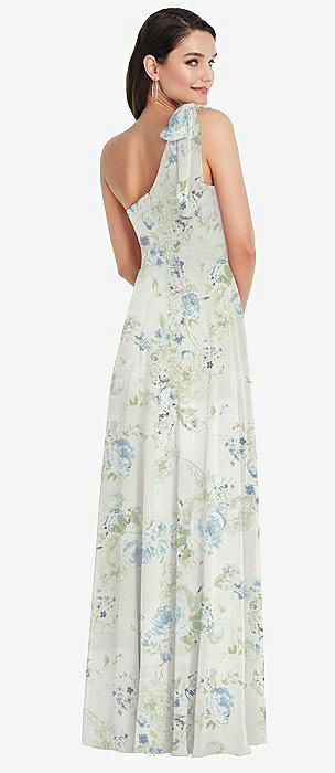 Draped One-Shoulder Maxi Dress with Scarf Bow in bleu garden