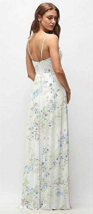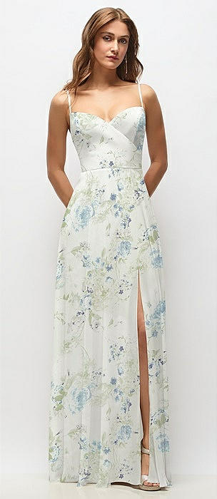 Chiffon Corset Maxi Dress with Removable Off-the-Shoulder Swags in bleu garden