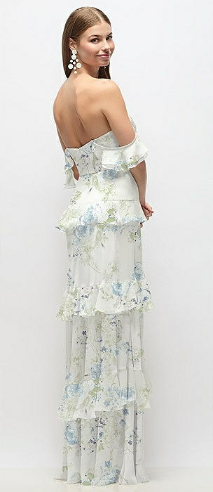 Bustier-Style Chiffon Tiered Ruffle Maxi Dress with Adjustable Straps in bleu garden