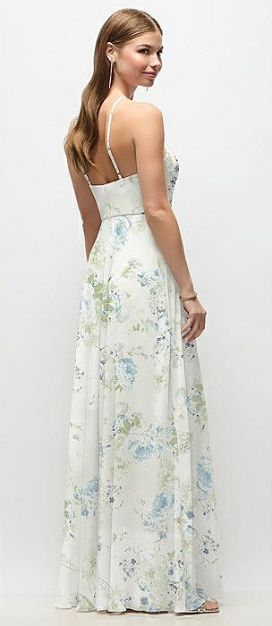 Chiffon Corset Maxi Dress with Removable Off-the-Shoulder Swags in bleu garden