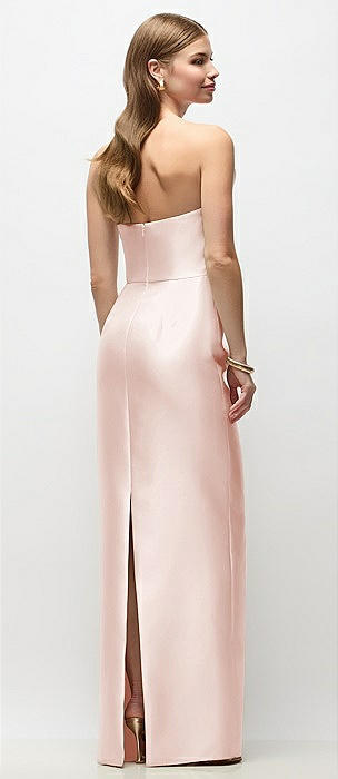 Strapless Cuff Satin Maxi Dress with Column Skirt & Back Bow in blush