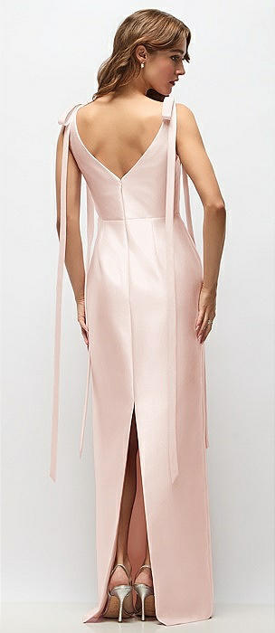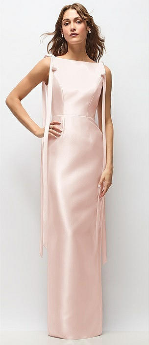 Bateau Neck Satin Column Maxi Dress with Exaggerated Tail Bow Straps in blush
