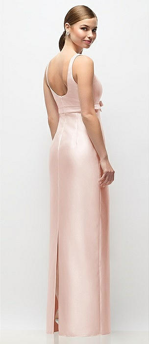 Scoop Neck Satin Column Maxi Dress with Bow at Empire Waist in blush