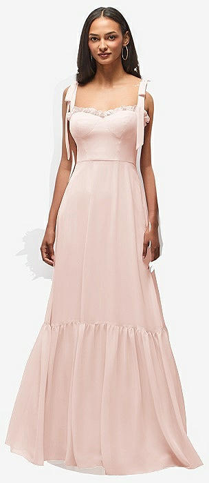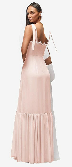 Tie-Shoulder Chiffon Maxi Dress with Front Slit in blush